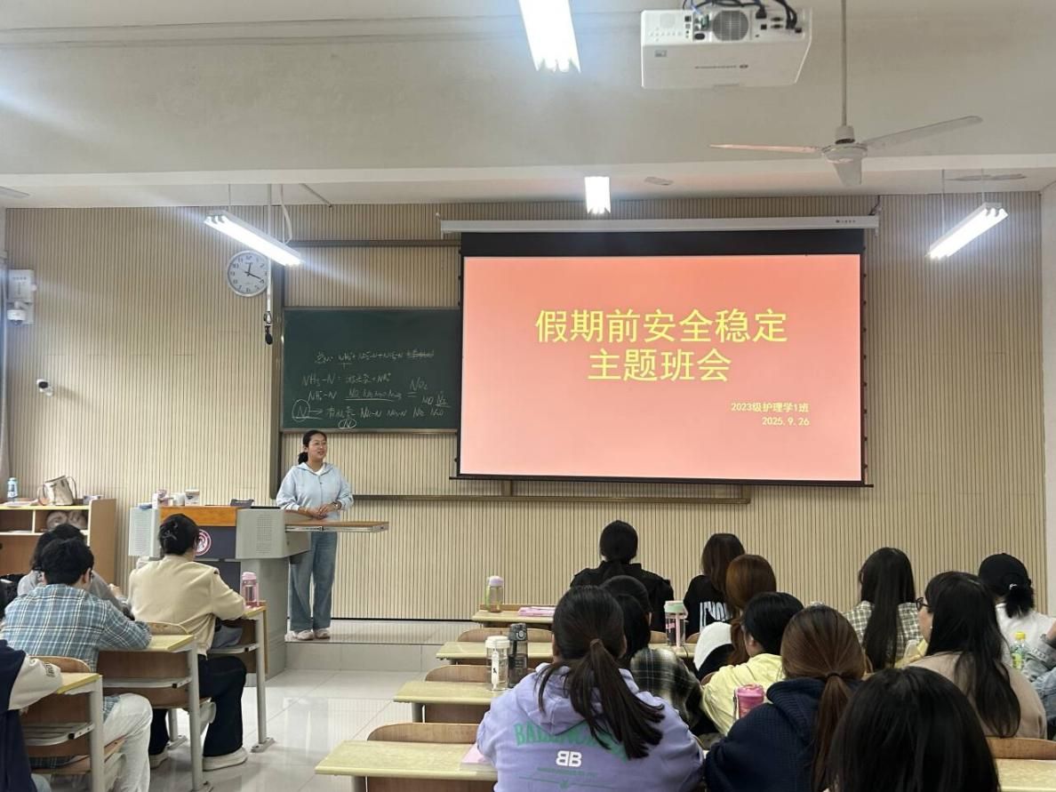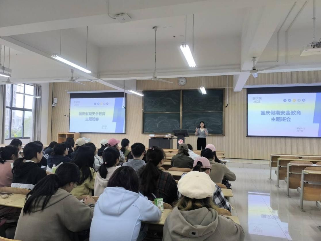 国庆、中秋双节长假将至,为切实增强学生安全意识,确保全体医学院学生度过一个充实、祥和、安全的假期,9月27日至29日,医学院各年级辅导员纷纷组织开展了“国庆假期安全教育”主题班会。班会围绕出行安全、防诈骗安全、宿舍安全、人身安全等核心议题展开,实现了安全教育全覆盖,为学生们的假期安全筑起一道坚实防线。
