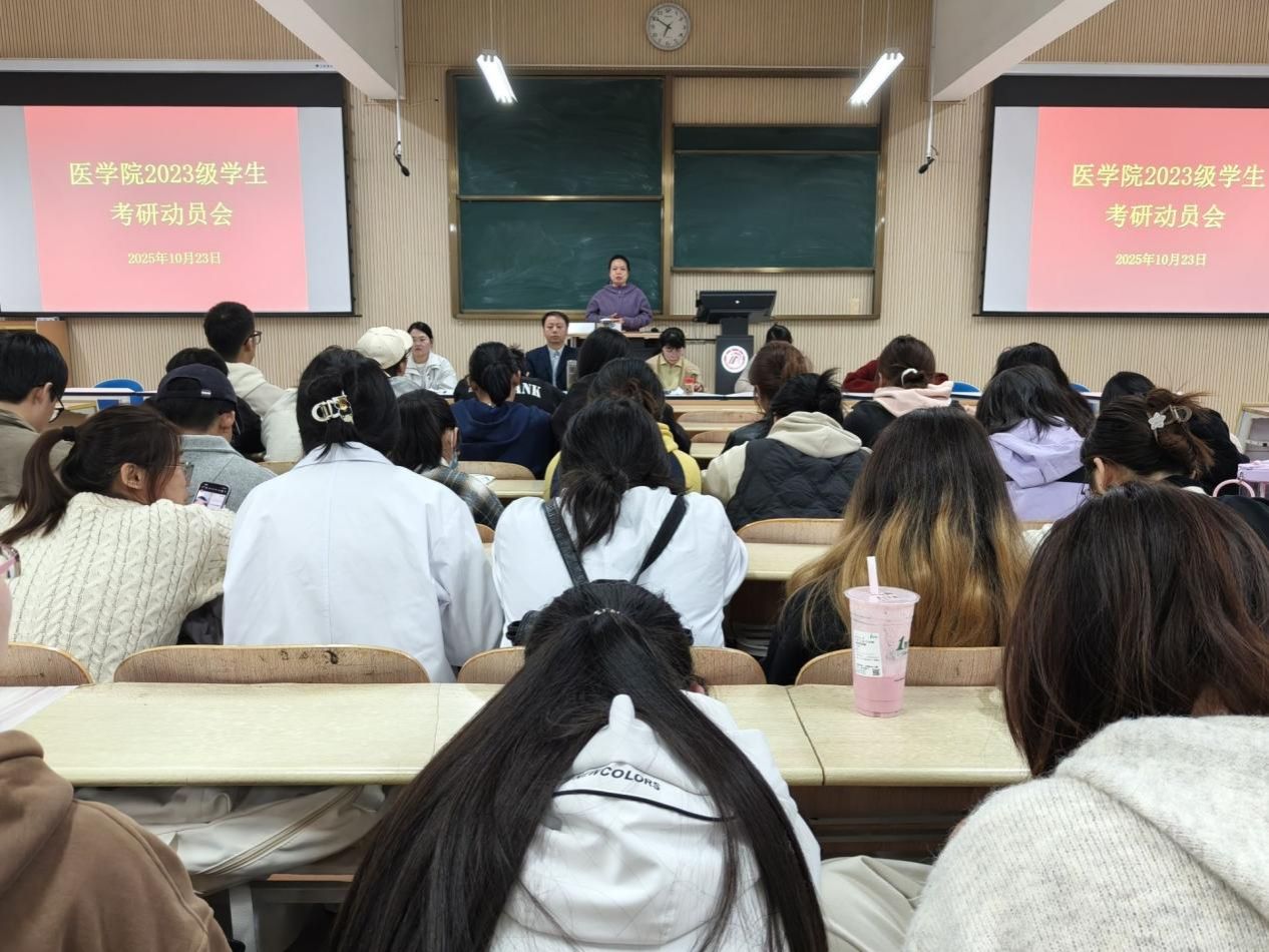 为深化学风建设,将育人实效延伸至考研升学关键环节,我院于10月23日面向2023级全体学生举办考研动员大会,旨在帮助同学们树立考研目标、科学规划路径。党总支书记黄勇、副院长陈佳、护理系主任白玉玲、教师代表李静、朱晶晶、辅导员晁一雯等出席,学工办主任董弯主持会议。