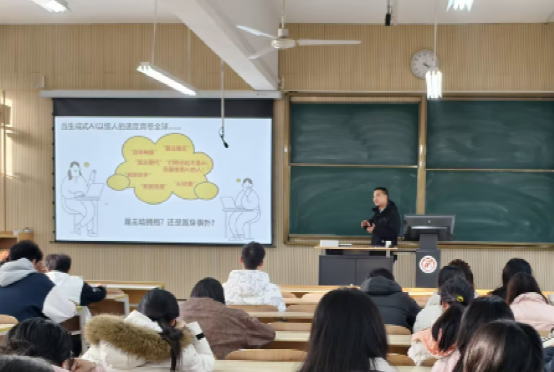 王康老师从“AI打造个性化学习路径”“AI成为思维教练与创意催化剂”“从知识记忆到能力整合”和“人机协同”四个方面展开讲解。王老师在课堂上强调,学生的学习逻辑需要从知识的储存者转向知识的驾驭者,要会学习如何向AI精准提问,如何交叉验证AI提供的信息,如何将AI的产出转化为自己的智慧成果。这是一种更高级的元认知能力。未来,一个“人机协同”的新型学习生态正在形成。当AI承担了知识梳理、基础答疑等任务后,大学课堂将更专注于激发灵感、引导思辨和培养情商。