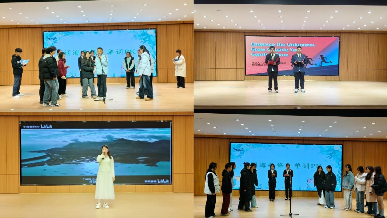 本次活动围绕核心英语词汇,设置英语语言展示以及情节创意类节目、单词接龙、你画我猜、现场观众互动、评委点评等多个环节。比赛现场氛围热烈而有序,英语节目展示中,24康复二班杨京茜以一首英文歌曲《wake》展现流利的英文发音和音乐表现力。团体协作单词接龙时,队员们配合默契、互帮互助,既展现了个人实力,更凝聚了团队力量,充分展现出医学生勤学善思、积极进取的良好风貌。在评委点评中,贠旭对同学们在本次活动中的表现给予肯定与鼓励,时,也针对同学们在英语发音、词汇运用等方面存在的问题提出了宝贵的建议,对提升学生英语能力有重要帮助。