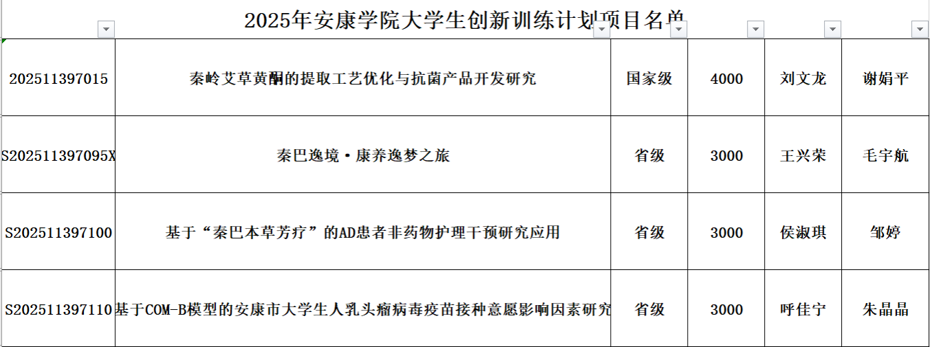 近日,根据学校发布的《关于2025年大学生创新创业训练计划项目立项的通知》,医学院在2025年大学生创新创业训练计划项目中获批立项4项,其中国家级项目1项,省级3项。