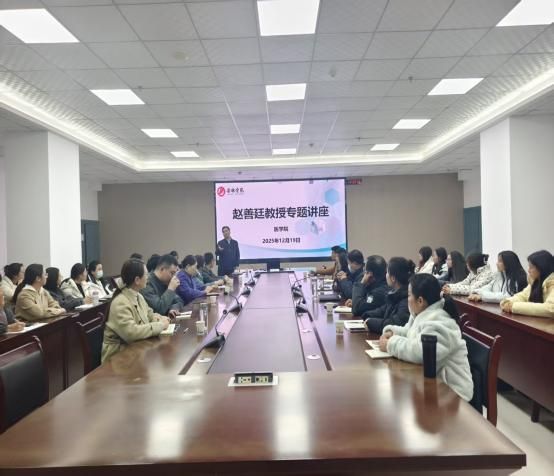 12月19日上午,由医学院主办的“赵善廷教授专题讲座暨临床科研合作交流会”在逸夫科技楼九楼大会议室成功举行。会议特邀我院首席专家赵善廷教授作专题报告,并邀请安康市中心医院、安康市人民医院的临床科研团队代表,化学与环境学院教师黄九林副教授团队,以及医学院全体教师、学生代表共同参与,聚焦基础研究与临床转化的深度融合,共商合作发展新路径。会议由医学院院长谢娟平教授主持。