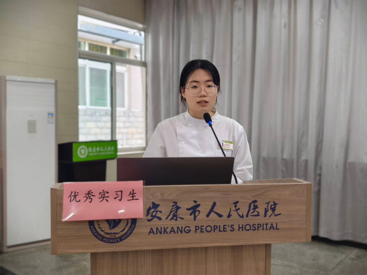 优秀实习生代表霍晴轩上台发言,深情感谢医院带教老师的悉心教导与悉心关怀,并表示将铭记这份认可,不负期望,在未来的医护道路上坚守初心、勇毅前行,以专业能力守护群众生命健康。