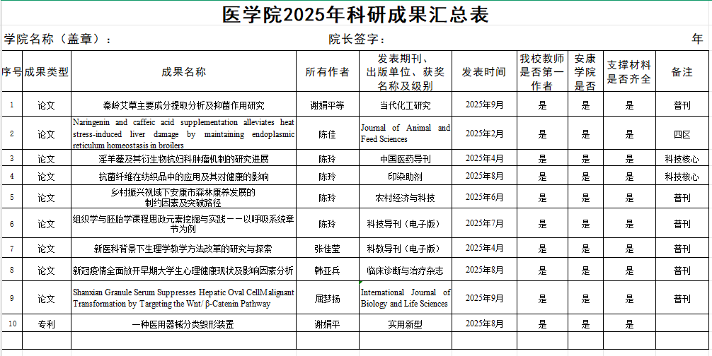 根据《安康学院科研奖励绩效实施办法》(校发〔2024〕108号)及《关于统计2025年度科研成果的通知》等相关要求,经过教师个人申报、学院审核等程序,现将2025年科研成果予以公示。