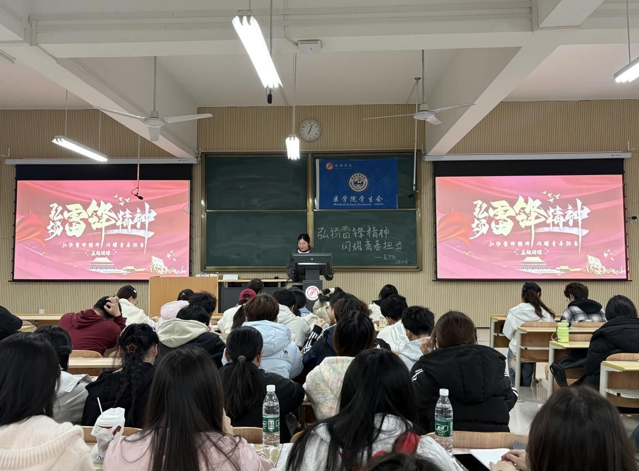 春风送暖,薪火相传。为深入学习践行雷锋精神,引导同学们树立奉献意识、扛起时代担当。医学院于3月10日晚上19:00在1305教室开展“弘扬雷锋精神,闪耀青春担当”主题团日活动,医学院全体青年团员参加,会议由团总支副书记黄钰淇主持。