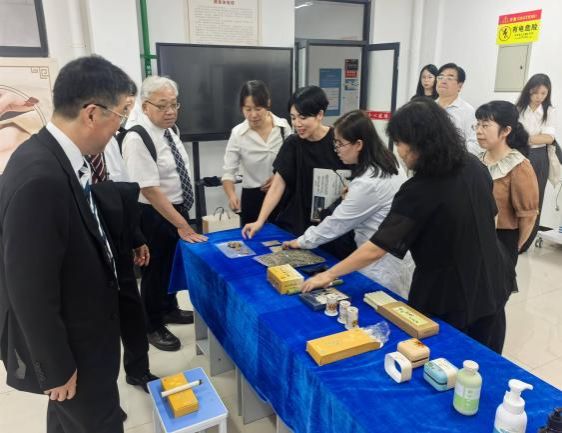 下午3时,岛根大学代表团参观了安康学院科技成果馆,详细了解学校在不同领域的科研成果与特色学科发展。随后,代表团深入医学院实验室,实地考察了解剖实验室、虚拟仿真实验室、康养实验室等15个实验实训基地,尤其在艾草产品体验和推拿按摩实践环节中,代表团成员亲自体验,并对老师的实践能力和专业素养给予高度评价。代表团特别指出,医学院实验设备数量充足、技术先进、配套完善,整体条件远超其本校现有水平,体现了我院在实践教学资源建设方面的显著投入与成效。