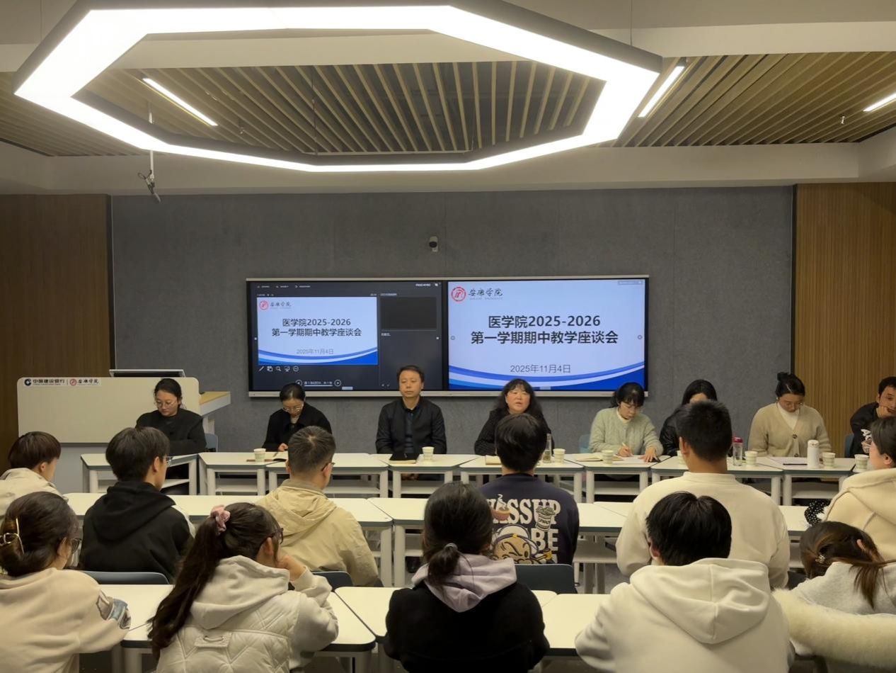 为切实了解学生学习生活诉求,畅通师生沟通渠道,推动教育教学质量持续改进,医学院于2025年11月4日晚召开2025-2026学年第一学期期中教学座谈会。学院领导班子成员、两系主任、学工办主任、教师代表与30余名各年级学生代表面对面交流,围绕学业发展、教学管理与服务保障等议题展开深入对话。