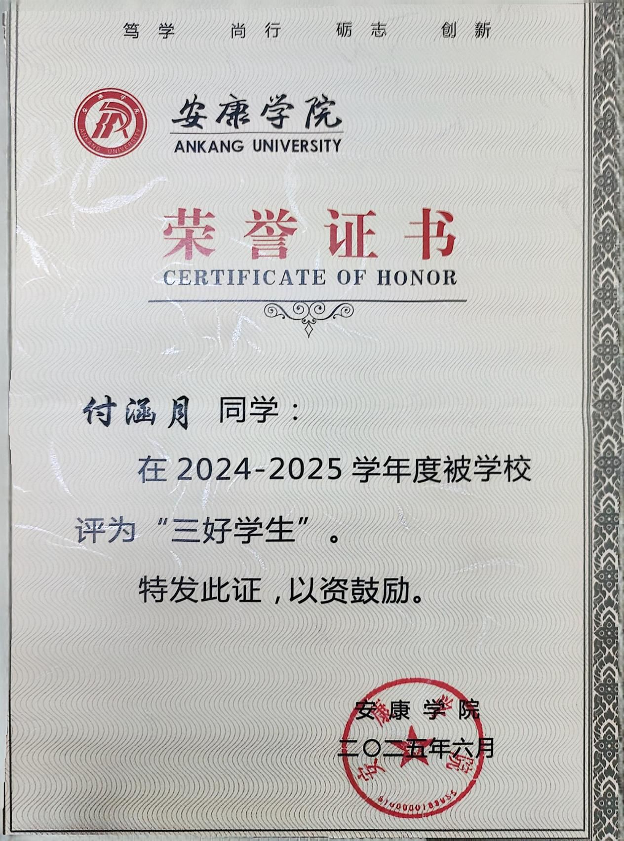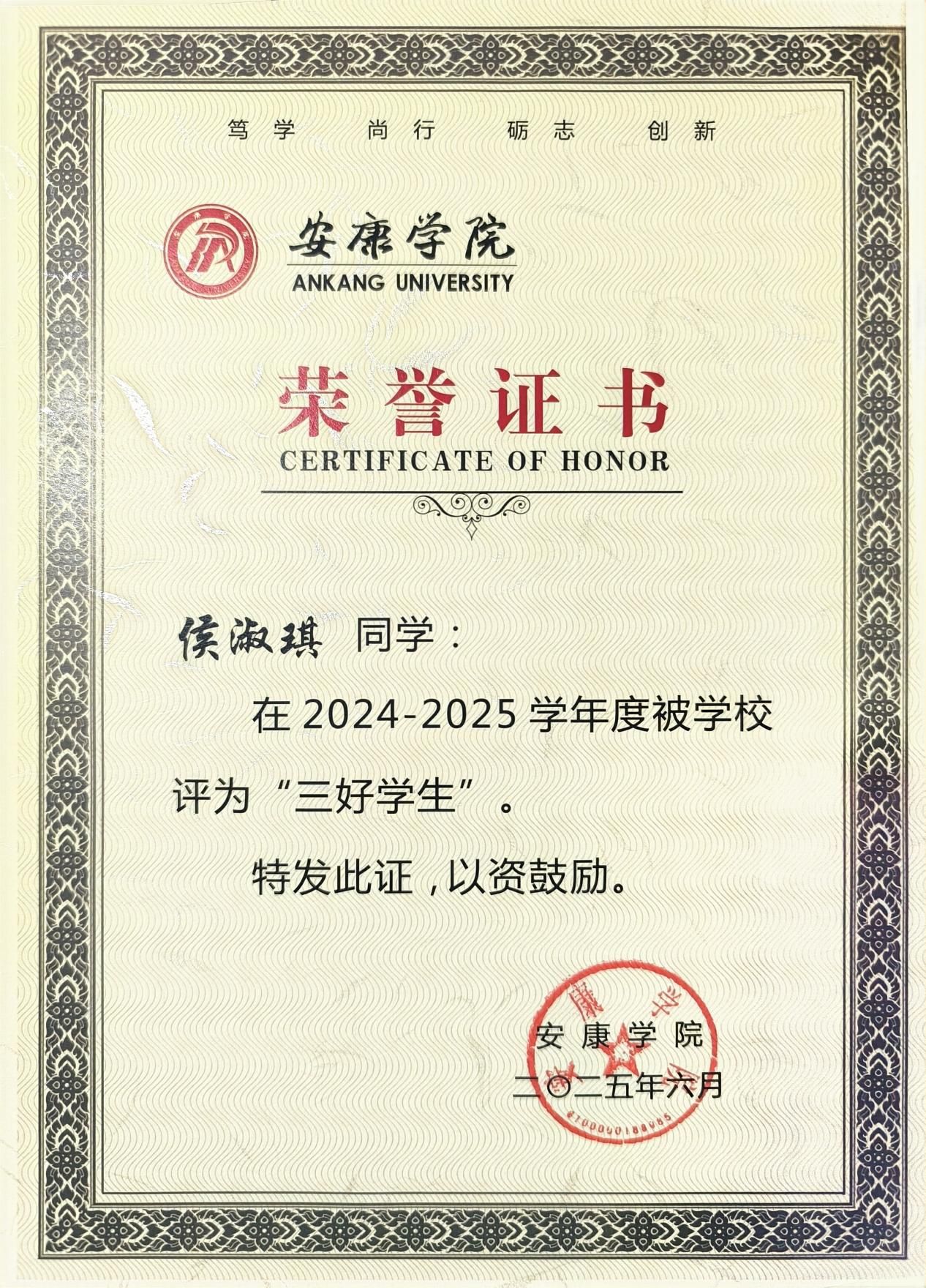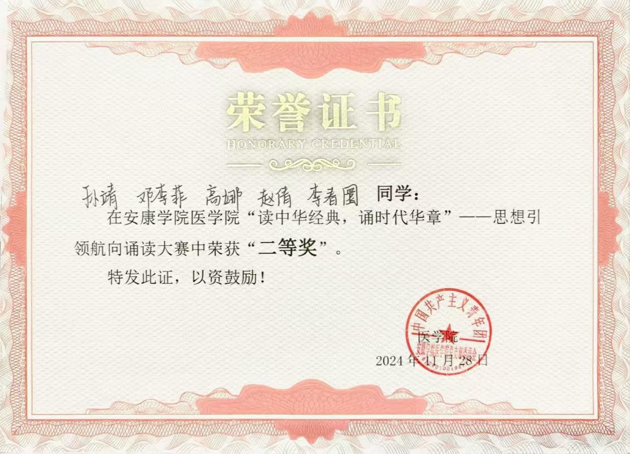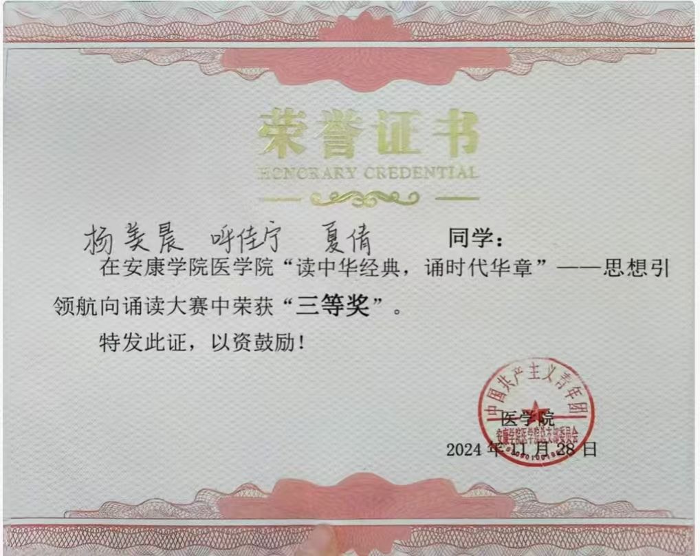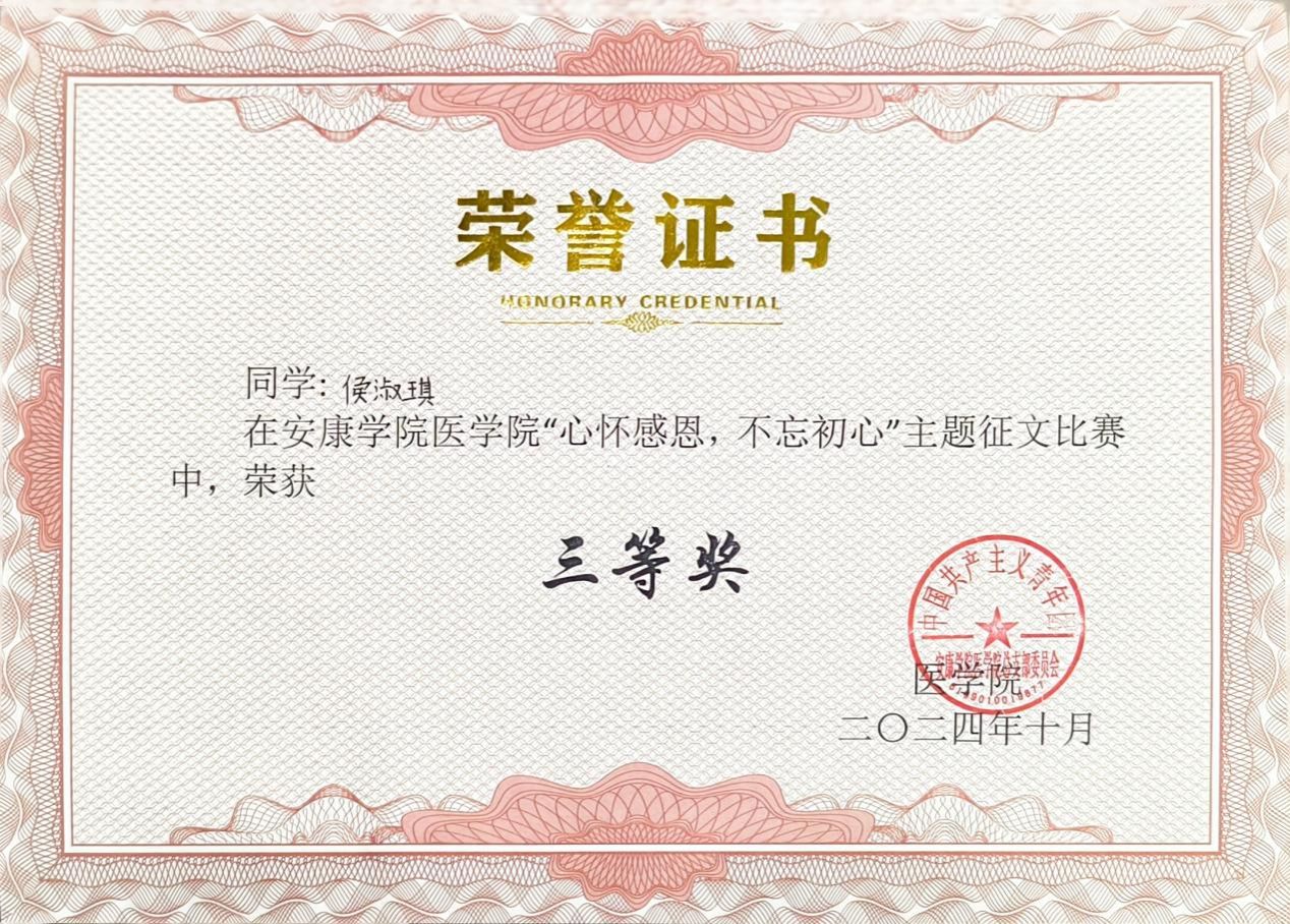 持续的积累让我构建起完整的知识体系,这份荣誉更坚定了我的学习信念。未来我会继续保持勤学善思的态度,深耕专业知识,为护理职业发展筑牢根基。
