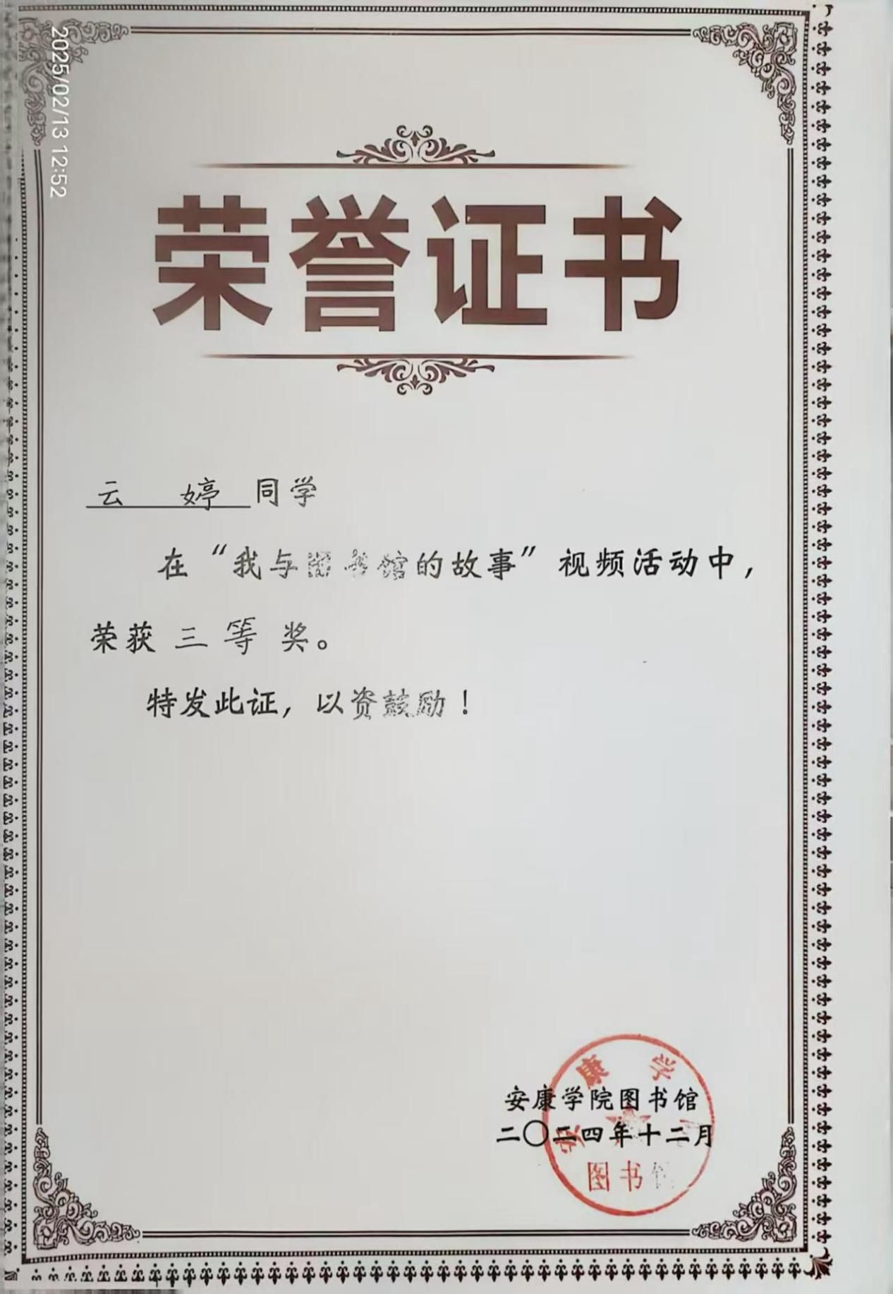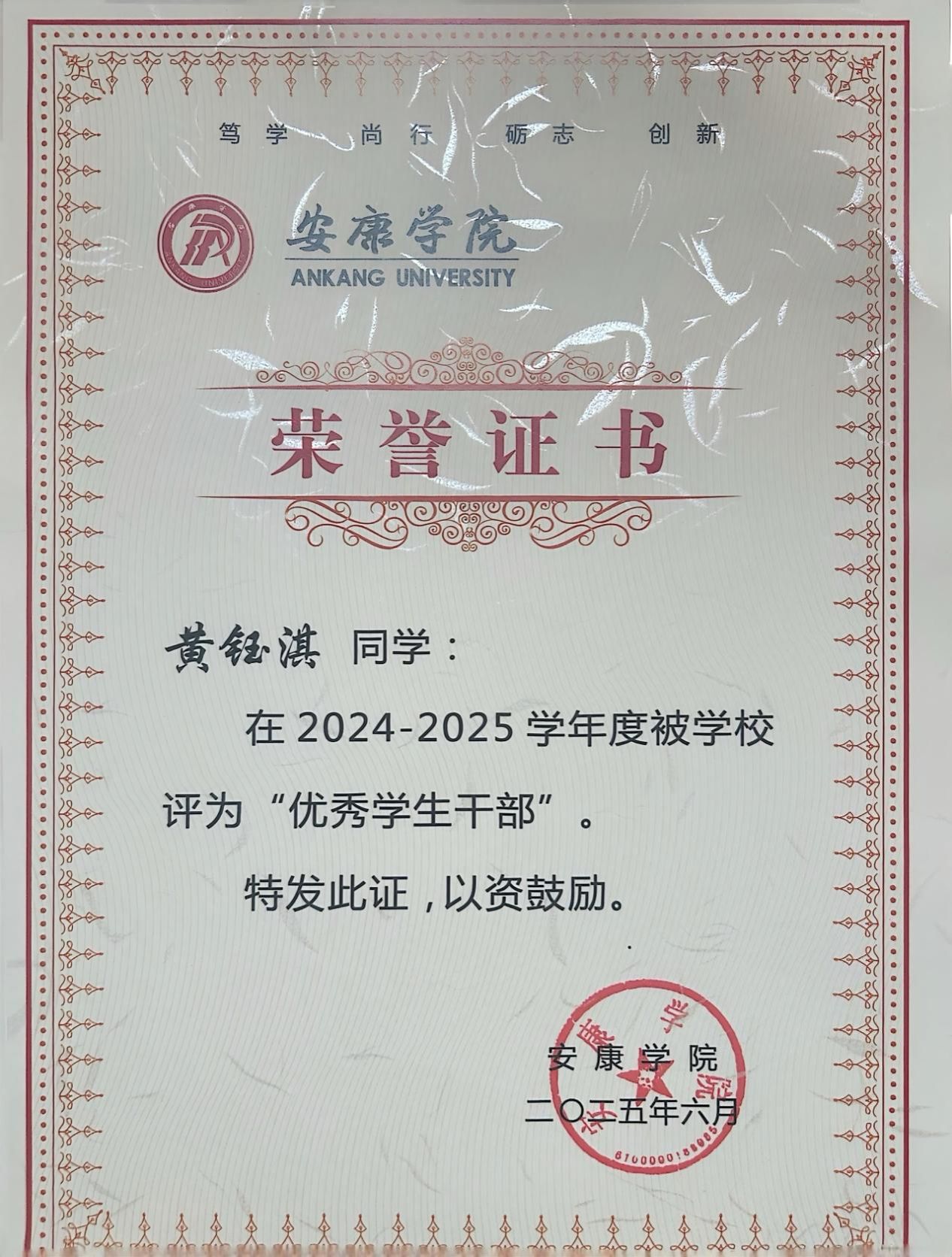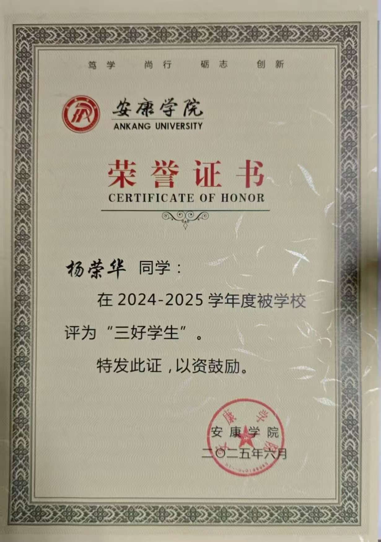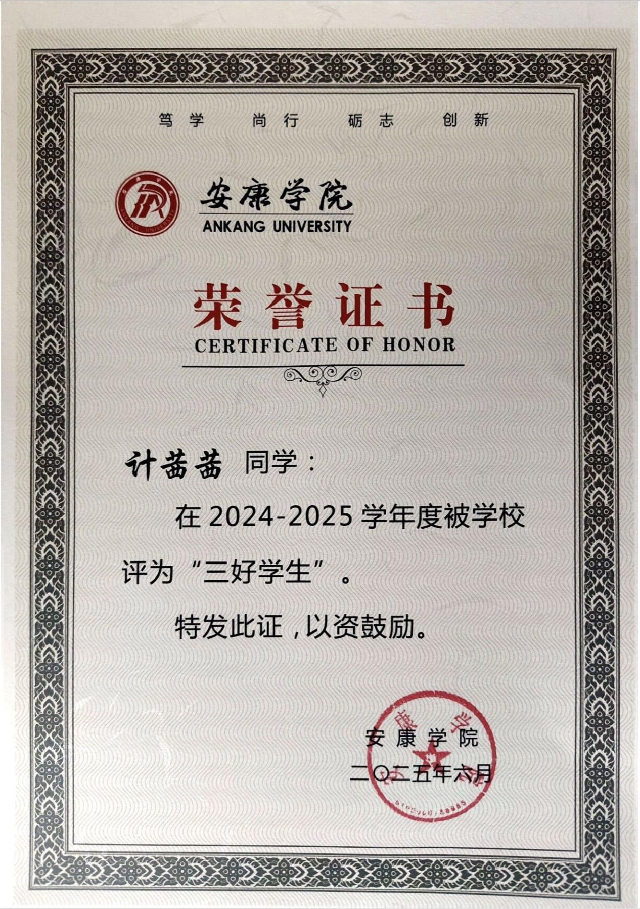 持续的积累让我构建起完整的知识体系,这份荣誉更坚定了我的学习信念。未来我会继续保持勤学善思的态度,深耕专业知识,为护理职业发展筑牢根基。