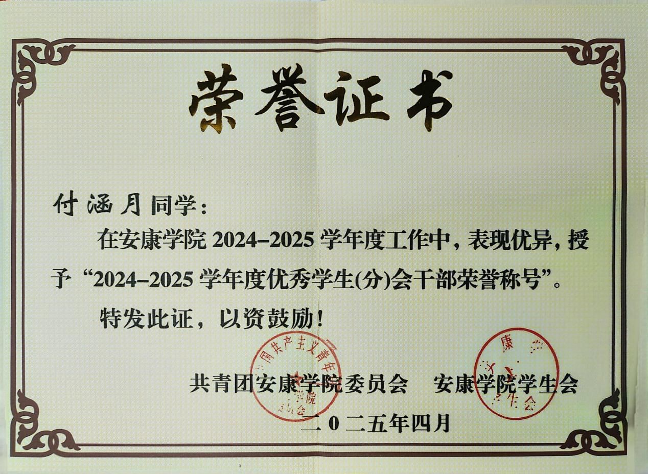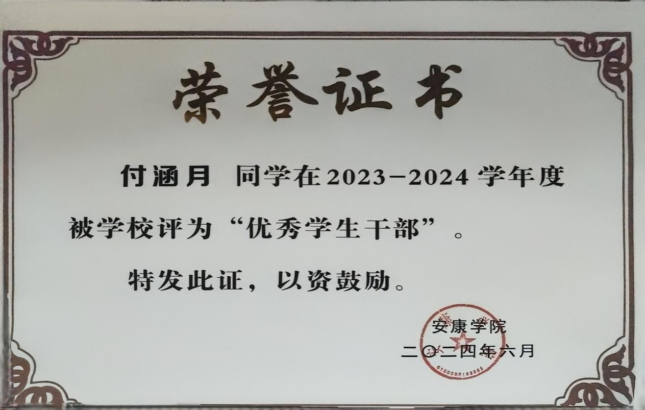 付涵月,2023级护理学1班,陕西宝鸡人,共青团员,现任学习委员兼学生会主席。