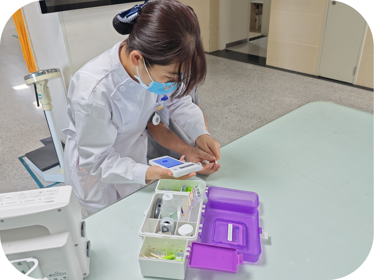 我轮转的第一个科室是心血管内科,也是印象最深的一个科室。因为是第一次接触临床工作,我面对患者的问题无法解答、对于各项护理操作手足无措,甚至对于某些操作手抖、紧张不安,但带教老师会耐心细致地给我讲述所有我可能存在疑惑的问题。最初的学习,是从最基础的生命体征测量开始,即便是简单的测血压、测血糖老师也会耐心进行最标准的示范,三查八对、无菌观念更是最基本的原则。还记得老师经常说的一句话:“你们现在就像一张白纸,我们做什么你们就学什么,所以要给你们教最规范的操作,严格要求自己”,这句话给我留下了深刻印象,也成为我实习期间的行事准则。因此,在接下来的科室学习操作中,我始终牢记老师的教诲,渐渐的熟能生巧、在工作中游刃有余。